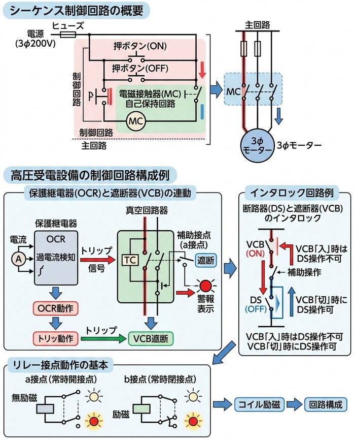 本記事では、高圧受電設備におけるシーケンス試験の目的、具体的な試験項目、そして試験には含まれない項目について、第一種電気工事士試験の受験者目線で徹底的に解説します。