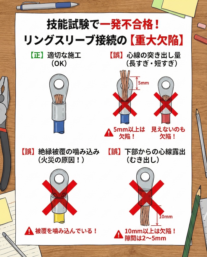 5. 技能試験で一発不合格!リングスリーブ接続の「重大欠陥」