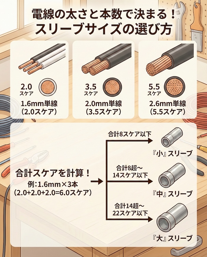 3. 電線の太さと本数で決まる!スリーブサイズの選び方